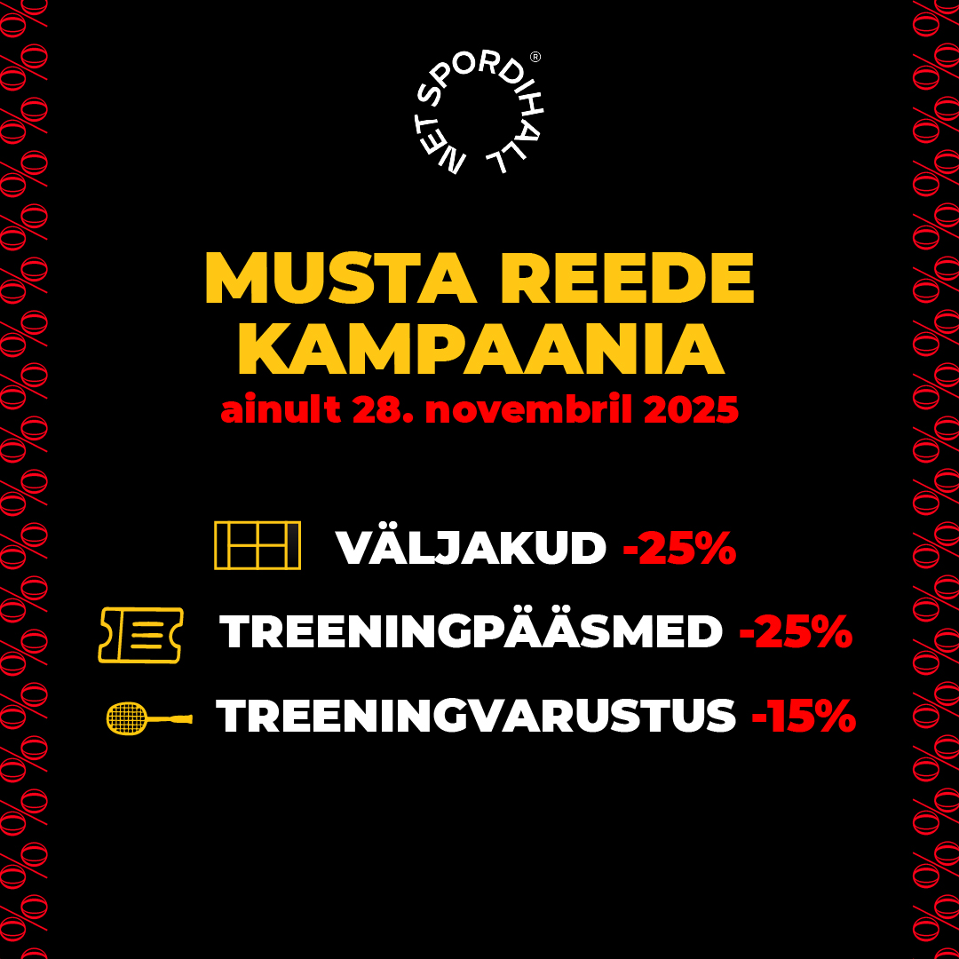 • Sooduskampaania raames tehtud broneeringut saate muuta sama hinnatsooni raames helistades 5455 0040 või kirjutades bron@netsport.ee (kallimasse hinnatsooni muutes peate täiendavalt tasuma vahe ning tehes seda peale 28.11.2024, ei kehti enam kampaaniahind). Broneeringut saab muuta ka ise kliendikontol miinimum 24h enne broneeringu algust, kuid sellisel juhul tuleb tasuda hinnavahe.